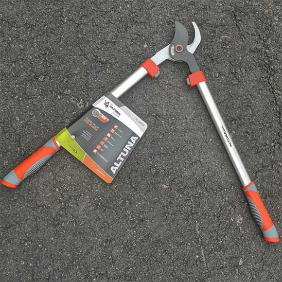 Tijera ligera de corte de precisión para uso intensivo y profesional, de puños ergonómicos, hoja teflonada, mango de aluminio, capacidad de corte de 38 mm , modelo exclusivo, con sistema de desmultiplicación, que minimiza el esfuerzo. Prácticas para la poda y/o cosecha de frutales y cultivos ornamentales, con cuchillas inoxidables.